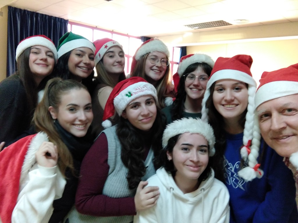 Como parece que mi vídeo del año pasado no os ha emocionado tanto, este año vuelvo a desearos una «Feliz Navidad» con una foto. Mis típicos Playmobil de los años anteriores he reemplazado con mis alumnas del curso de alemán en la Universidad de Málaga.